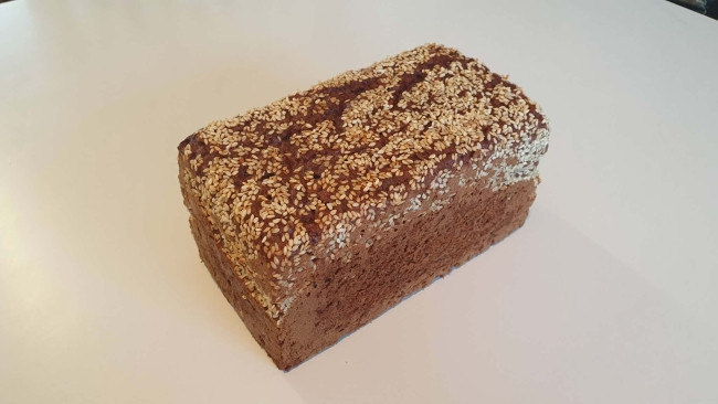 Et klassisk sønderjysk rugbrød med en tæt, saftig krumme og en kraftig, fyldig smag.