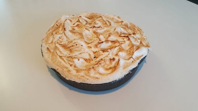 En frisk og lækker kage med lys bund, fyldt med syrlig citroncreme og toppet med let brændt marengs, der giver en perfekt balance mellem sødt og syrligt.