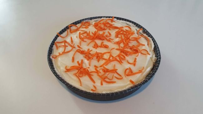 En blød og saftig gulerodskage med let krydret smag, toppet med cremet flødeostecreme.
